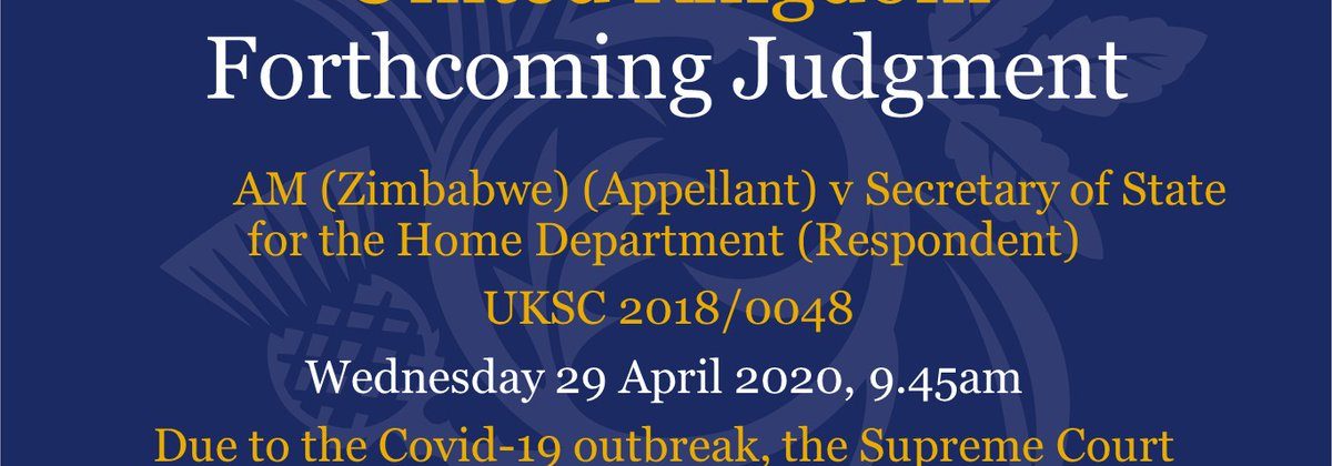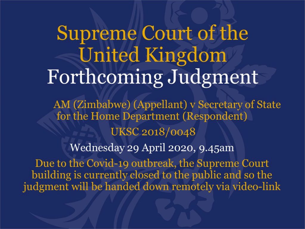 UK Supreme Court giving Judgment of AM (Zimbabwe) V SSHD